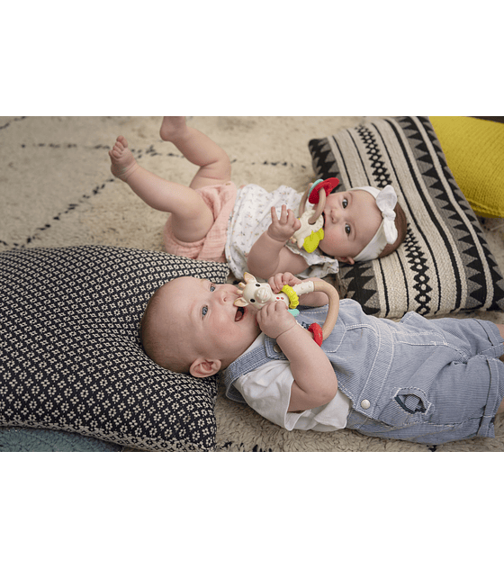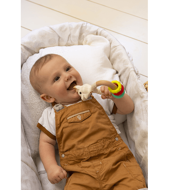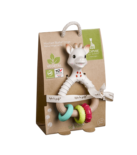 Este sonajero forma parte de una nueva línea de juguetes ecológicos diseñados con bioplástico, una materia prima renovable 100% natural elaborada a partir de plantas.